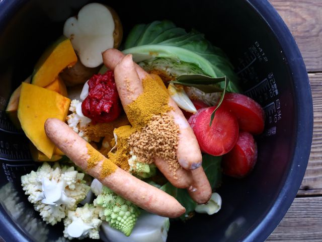 お好みの野菜を入れて、ぜひ、炊飯器で作る、旨こくチーズカレーポトフを作ってみてくださいね!