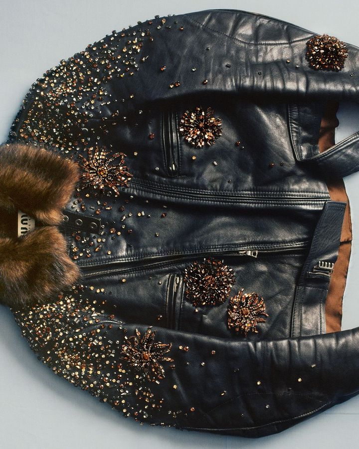 今年の『Miu Miu Upcycled』コレクションには4つのストーリーが存在する。一つ目は世界中から集められたレザー、二つ目は1950年代から70年代に使われていたキルト、三つ目は色彩に焦点を当てたブランドのアーカイブから選ばれた糸、四つ目はシャンティリーレースをベースにした刺繍だ。それぞれのアイテムについてのストーリーが一つになって、唯一無二のアイテムを生み出している。