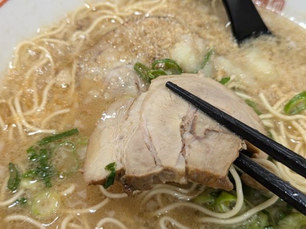 こだわった醤油に色々な調味料を配合して味付けしたというチャーシューは、何枚も食べたくなる美味しさでした。チャーシューのたれは、ラーメンのかえし(スープのたれ)にも使用しているそうです。