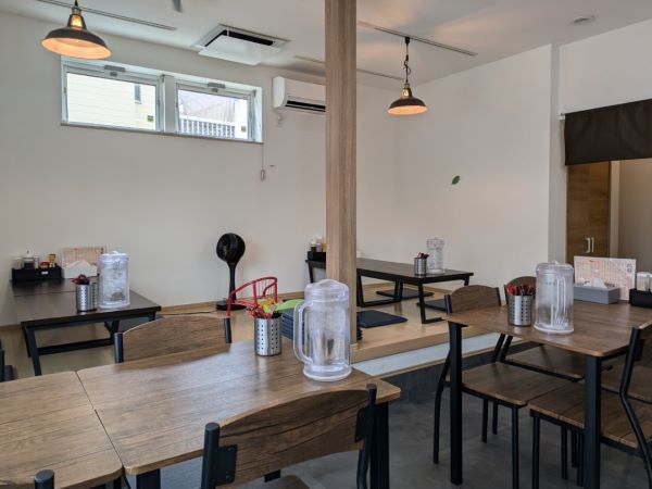 店内にはポップな音楽が流れ、明るく清潔感のある雰囲気です。奥には小上がりの席もあり、子ども連れにも優しい設計です。