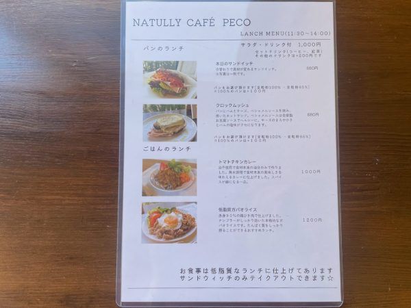 ナチュリーカフェペコさんでは、ランチメニューも展開中♪ ハムとチーズにスペシャルソースを挟んだクロックムッシュや、低糖質ガパオライスなど、どれもおいしそう! サンドウィッチのみテイクアウトできるそうですよ!