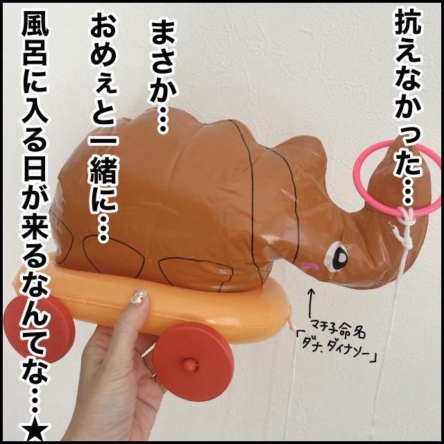 疲れすぎていると普段は気になることでも気にする気力もなくなりますよね。ダナダイナソーくんもまさかお風呂に入れてもらえるなんて思っていなかったでしょうね(笑)