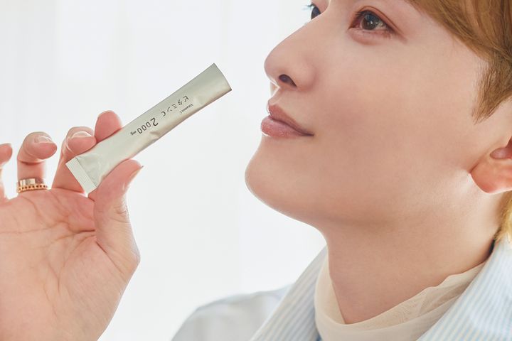 『シミやくすみの原因になるメラニン色素の生成を抑制、また抗酸化作用のあるビタミンCは不可欠。体の中に貯めておくことが難しく、吸収・排出されてしまいます。だからこそ、こまめに摂取することが重要。僕は一日に2000mgを5回に分けて摂るようにしています。帰宅したら、ビタミンCを摂ることを習慣に!』