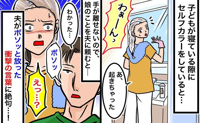 「一生恨むかも」自宅でセルフカラー中、夫に子どもを任せたら…夫のボソっと放った衝撃の言葉に絶句!