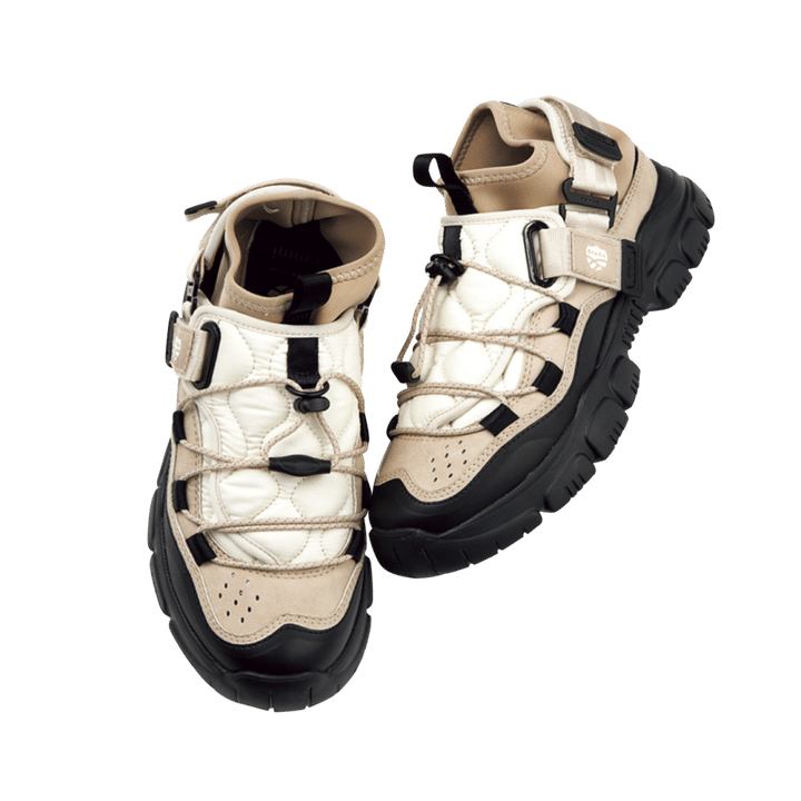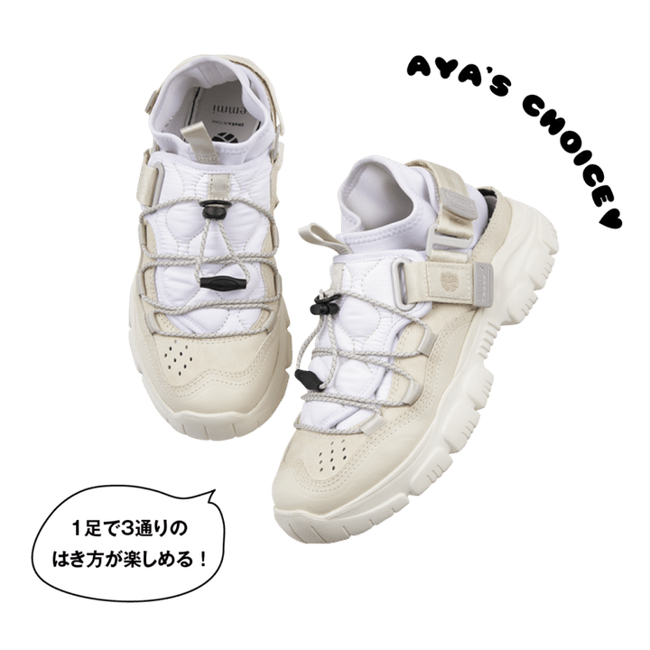 シャカで不動の人気を誇る“スニーカーサンダル”。エミ別注のこちらは、ディテールにキルティングを使用した「ラップドマウンテンAT」にインナーソックをセットし、ハイスペック&画期的な3WAY仕様。