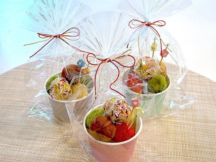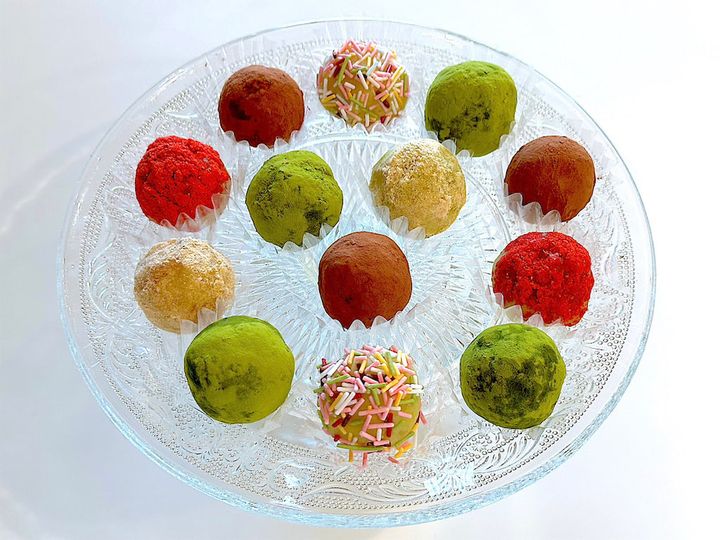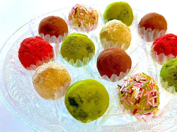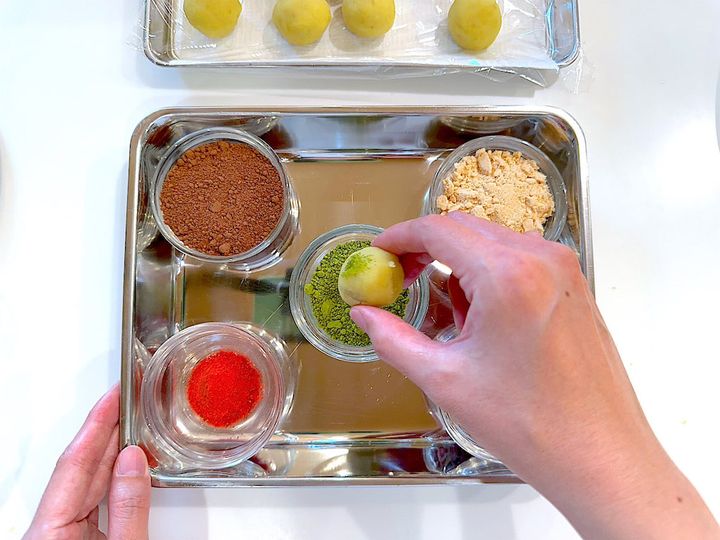 4. 3を適当な大きさに丸め、お好みのトッピングパウダーをまぶす。