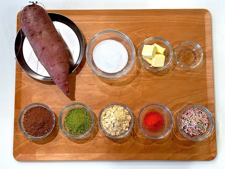 待ちに待ったさつまいもの季節が来ました!さっそく焼き芋を食べまくってますが、たまに甘さ控えめなお芋に当たることも。そんなとき、埼玉県の農家に教わったスイーツに加工したら超幸せな気分に♡蒸したお芋に砂糖やバターを加え、丸めて100均の材料でカラフルにトッピングする、以上!これだけで、宝石のようなひと口スイーツが出来ちゃうんです。今回、いろんなトッピングを試してみました!これはハマりますよ~♪