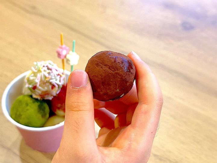 娘と2人で、他のトッピングパウダーをまぶしたおさつボールもパクリ。