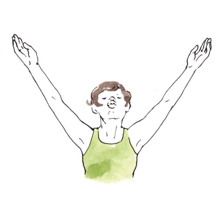 • 両手を上げると首と肩甲骨を動かしやすくなります。