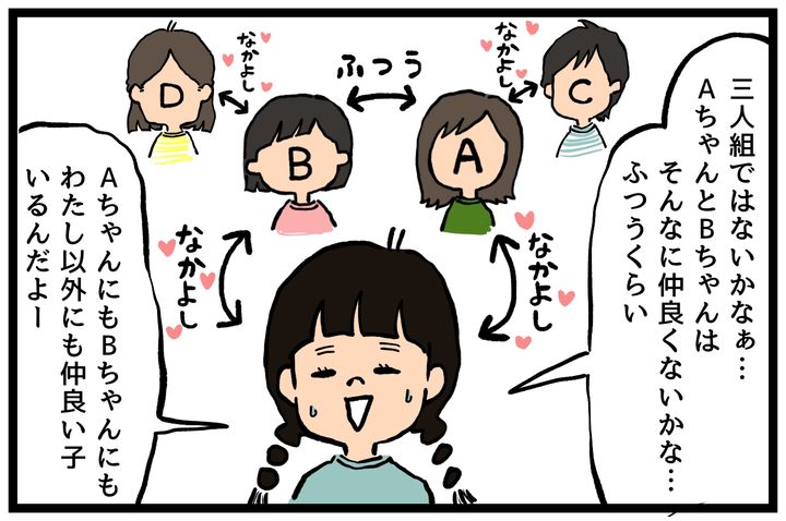 私は、特定の誰か一人と仲良くすることが苦手で……グループに属するか三人組で過ごすことが多かったのですが……。