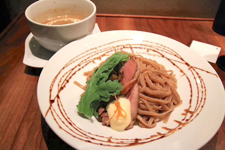 フレンチ出身のシェフが手がけるつけ汁は、濃厚ながらもクリーミーで絶品です。ドイツ産ライ麦を配合した自家製麺は食べ応えがあり、国産高級鴨肉の繊細な旨味と見事に調和しています。