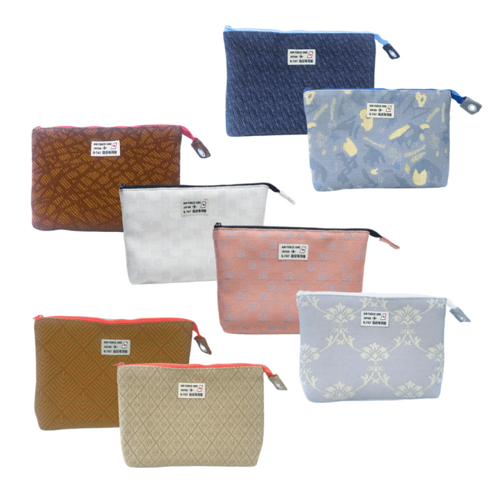 和の中にどこかモダンな雰囲気も感じられる織り柄が美しい。B747 Collection オリジナル トラベルポーチ M[H14×W23×D4㎝]¥4,500(全てスカイアートジャパン)
