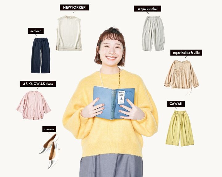 [item] 右上から時計回りに:ヘリンボーン裾タックパンツ フリーサイズ(S-4L対応) ¥8,990/sanpo kuschel(ワンピース) コットンウール立体フラワー刺しゅうブラウス(11月発売) 15、19号 ¥23,100/super hakka feuille(HAKKA) カラーワイドパンツ フリーサイズ(S-3L対応) ¥9,790/CAWAII(ワンピース) メタルポイントポインテッドトゥパンプス 21.5〜26cm ¥3,799/menue(welleg) ストライプシャツ 3(15-17号相当) ¥18,480/アズ ノゥ アズ オオラカ(アズ ノゥ アズ) 甘織りデニムジップカーブパンツ S〜3L ¥4,950/ecoloco(エコロコ) ニットベスト L13〜L23号 ¥20,900〜¥23,100/ニューヨーカー(ダイドーフォワード)