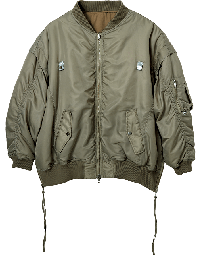 MA-1デザインに厚みが出ない程度に中綿を入れた、まさに今すぐに着られる軽パデッドコート。コート¥31,900(メゾンスペシャル/メゾンスペシャル 青山店)