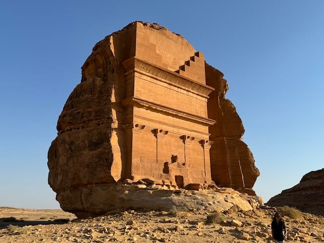他にも観光ルートには、カスル・アル・ファリードという高さ22mの一枚岩に作ったお墓も必見。形が似ているので、ヨルダンのペトラ遺跡と比較されます。この遺跡群の中でも最も大きいお墓と言われています。