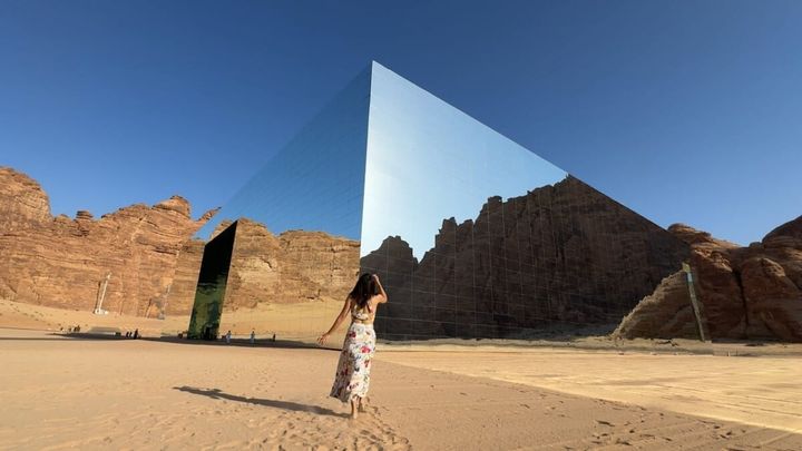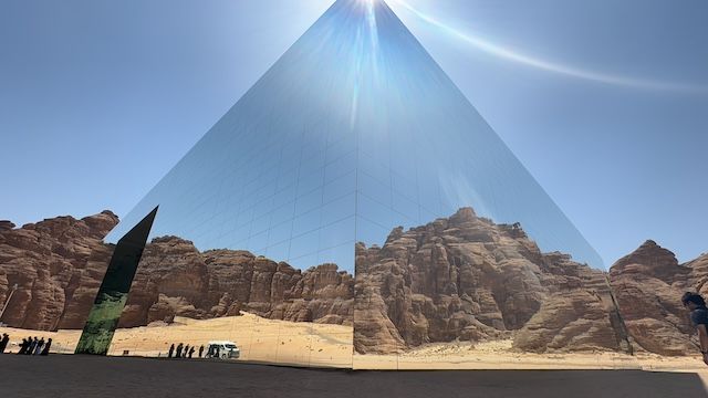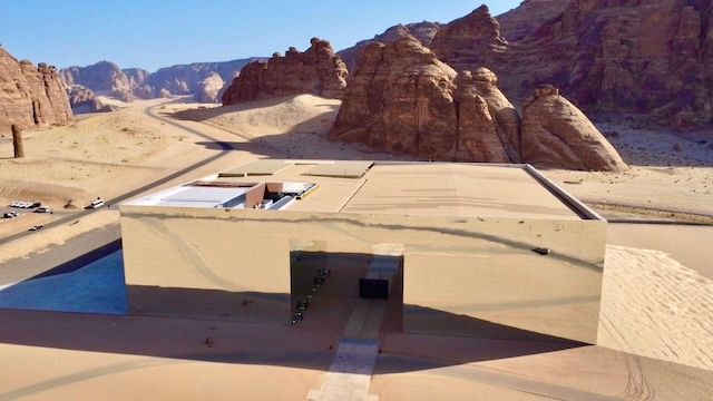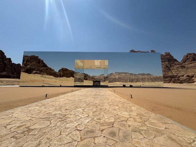 そして、アルウラの魅力といえば「アート」な魅力。砂漠の中で突然現れる鏡ばりの箱。まるで忍者のように砂漠の中に馴染んでいるのですが、これはマラヤと呼ばれるコンサートホール。