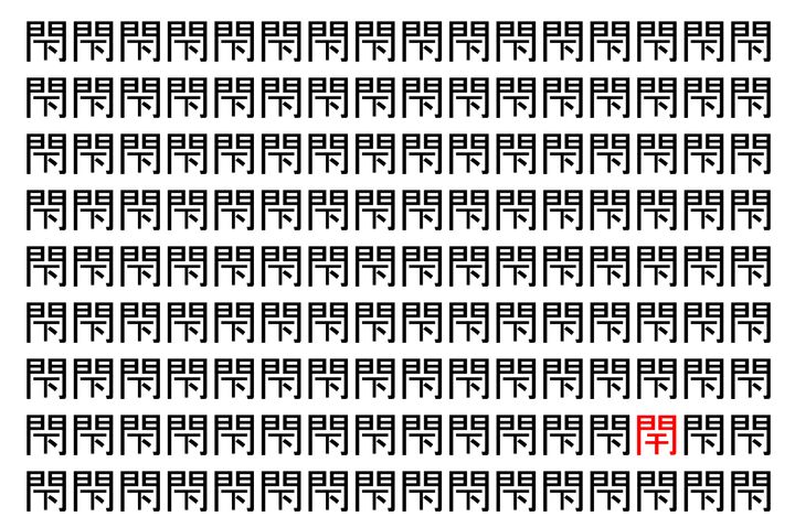 2. 【脳トレ】「閇」の中に紛れて1つ違う文字がある!?あなたは何秒で探し出せるかな??【違う文字を探せ!】