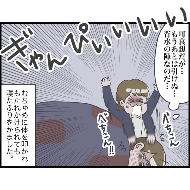 3. 意志は固く可哀想だが後には引けない。娘に叩かれても寝たふりをかます夜間断乳すると決めた日[4]|しおは娘育児中。
