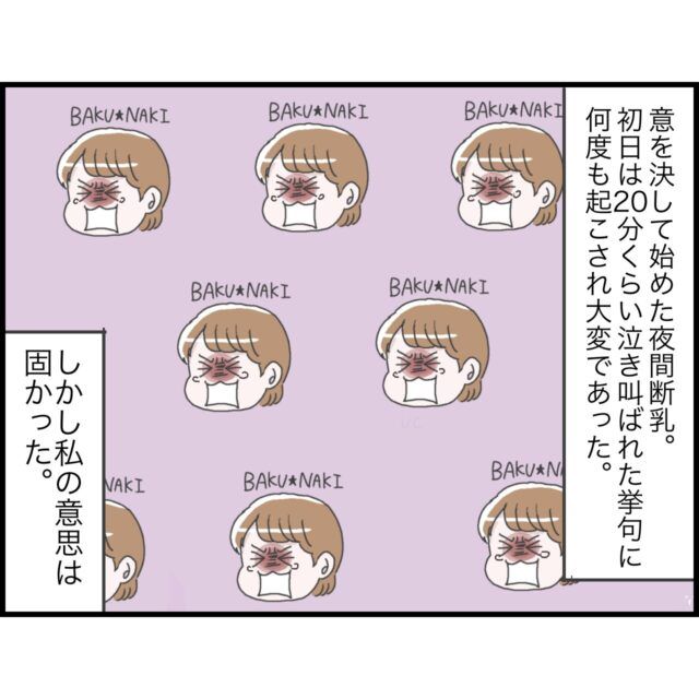 娘ちゃんの卒乳を理想としていたしおさんは、母体の回復がままならないこともあり、断乳を決意することに。添い乳がすっかりクセになってしまった娘ちゃんが眠りの浅いタイミングで何度も起きるようになり、寝付く為に咥える状態に。この状況を改善するためにとネントレをリベンジすることにしたしおさん、長期休暇でご主人にも協力してもらったのですが、それも長くは続かず結局元通りに。何かないかとネット検索したところ「夜間授乳」という言葉を見つけ、すぐ行動することにしました。