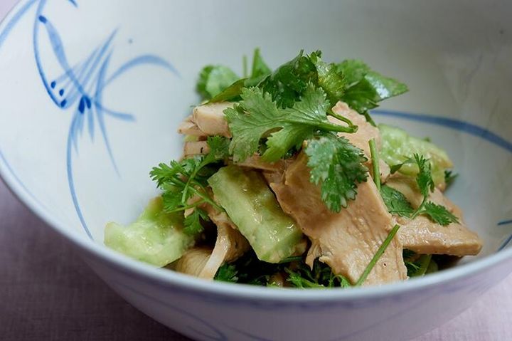 塩麹で漬けて蒸した鶏肉は旨味が逃げず、しっとりとして柔らかなまま。あっさりした胸肉を使い、手づくりの胡麻だれで和えてバンバンジーに仕立てます。鶏肉に胡麻だれをしっかりからませておくのが、おいしさのポイント。たたききゅうり、香菜とのバランスも絶妙です。魅力的な蒸し料理を料理家のウー・ウェンさんに教えてもらいました。