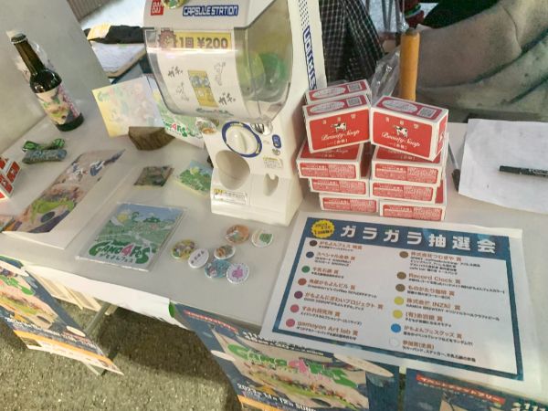 各ライブ会場・飲食店・出店ブースに設置されているパンフレットにスタンプを集めていくのですが、スタンプ3つで1回ガラガラ抽選ができます。抽選場所は城東商店街内本部で、ハズレなしで景品をゲットできるチャンス!