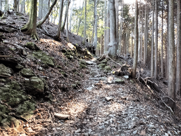 石や木の根がゴロゴロとした登山道が続きます・・・。
