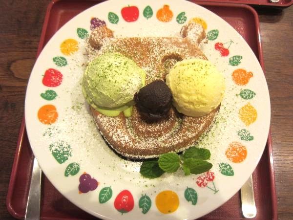 !抹茶くまッフル。こちらのほっぺは、バニラアイスと抹茶のホイップで、お鼻にあんこがのっていました。こっちも可愛い~~美味しい~~、最高~~。こっちのくまさんは、笑ってる~、嬉しくなっちゃいました。