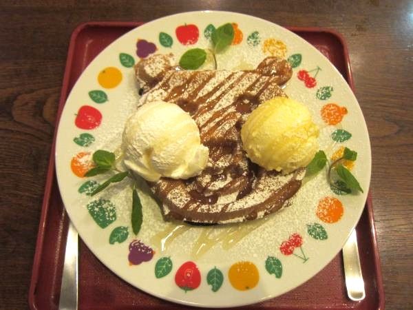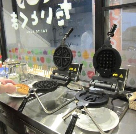 ワッフルは、注文を受けてから店内で焼いてくれるので、焼きたてが食べられます。甘くていい香りが漂いますよ~。