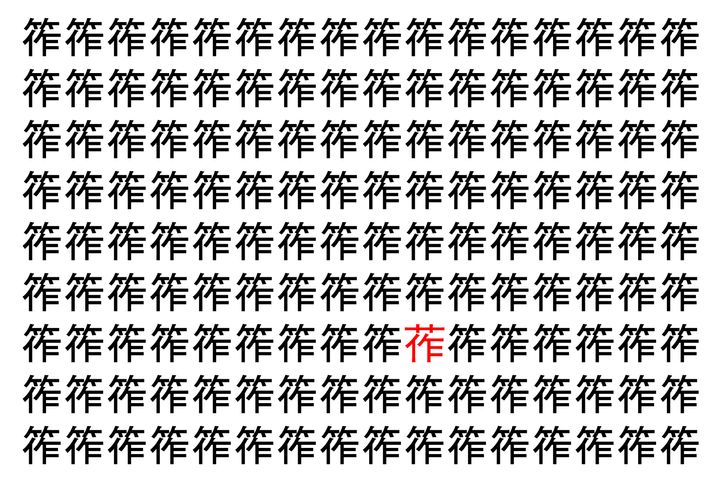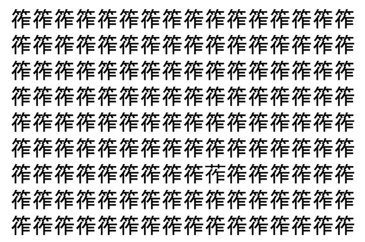 2. 【脳トレ】「筰」の中に紛れて1つ違う文字がある!?あなたは何秒で探し出せるかな??【違う文字を探せ!】