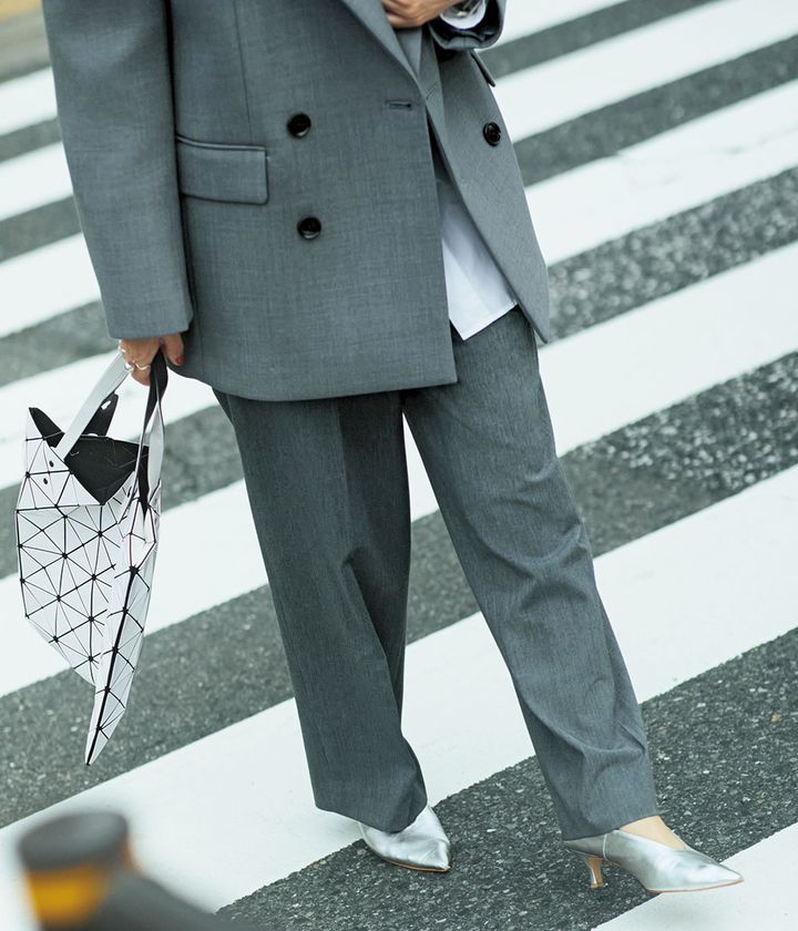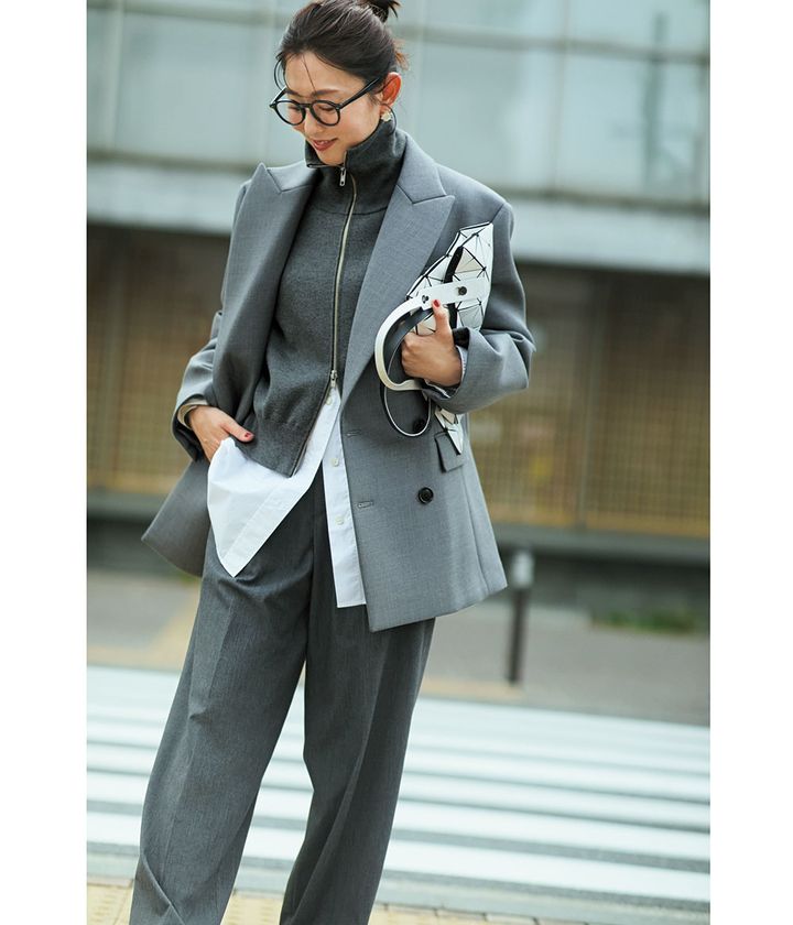 『去年グレーJKが重宝したので今年は暖冬にぴったりの厚さのボンディング素材が気になります。こなれたシルバーの靴とバッグで纏めれば仕事でもスタイリッシュにオシャレを楽しめそうです。』