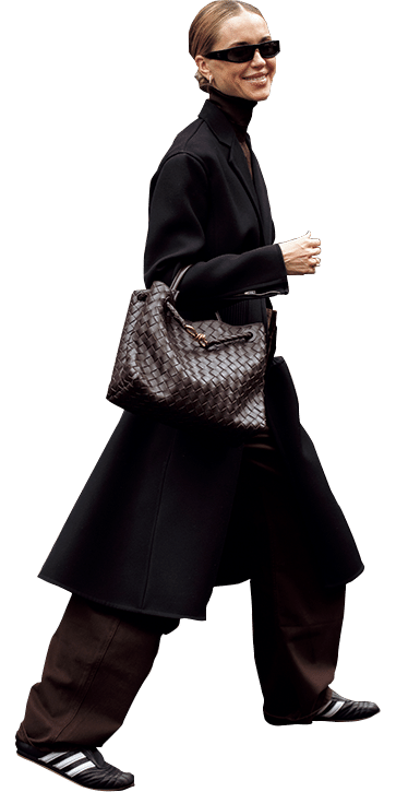 “Brown is new black” そう聞くと、つい隅々までブラウンで統一したい(そう、まるでジュエリーのゴールド派かシルバー派かのように)気持ちになりますよね? でも「ポイントで取り入れるほうがスタイリングしやすいし、今っぽく仕上がる」というのが百々さん。R40にとってオールブラウンは、エレガントになりすぎるので、いつものブラックとかけ合わせるほうがモダンに。まずは靴とバッグだけブラウンにしてみて。