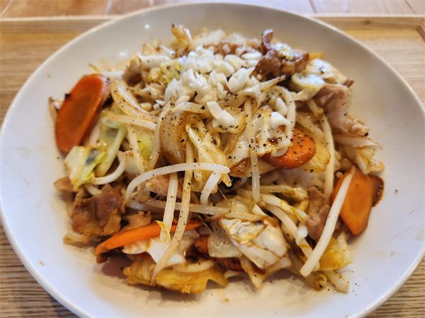まずは、食感!もやしはシャキシャキでキャベツも程よく食感が残っています。
