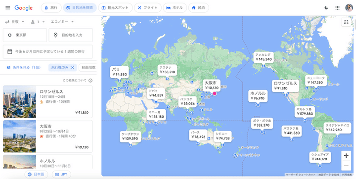 【裏技ポイント】Google Flightsの地図検索機能は、どこへ行くか決まっていない時こそ使える!