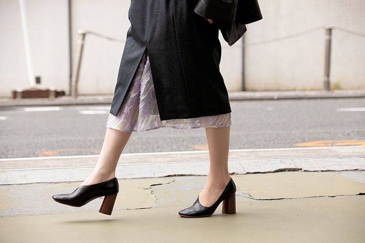 シアーキャミドレス¥41,800、スカート¥27,500(共にイウエン マトフ/ユナイテッドアローズ 渋谷スクランブルスクエア店)、CELINEのシューズは本人私物