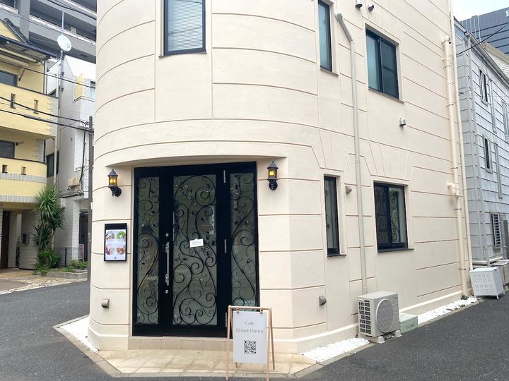東京メトロ代々木公園駅2番出口から徒歩8分、閑静な住宅街にあるのがグリークヨーグルト専門店「Greek Parlor」です。洗練されたデザインの建物からはおしゃれな雰囲気があふれ、店前には看板が出ているので近くまで行けばすぐに見つけられるはず!