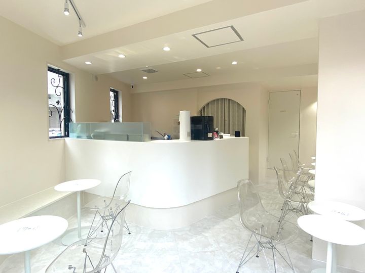 「Greek Parlor」の店内は、大理石の床が敷かれた高級感のあふれる白基調の空間。韓国に行ったときに出合ったおしゃれなカフェの雰囲気を軸に、高級感や過ごしやすさを追求した結果たどり着いた内装デザインなのだそう。