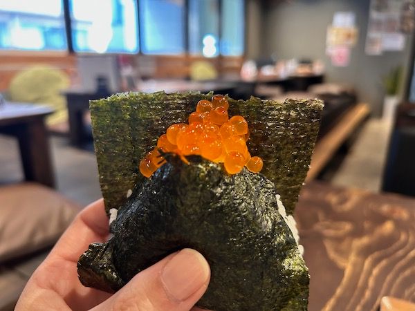 3口目、あれ、またいくらさんが出てきたー!そうなんです、具は上だけでなく、中にもしっかり入ってますよ〜