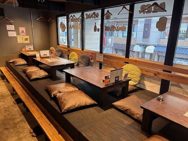 店内に入ると、ふかふかのクッションがあるお座敷、そして広いテーブル席もあります。