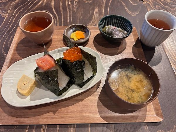 選べる具の違いやおむすびの数によって、800円、1,000円、1,200円と値段が変わります。 私は、13種類全てのおむすびの中から2つ選べる1,000円の おむすびBランチにしてみました。選んだ具は、大好きないくらと辛子明太!セットには日替わり小鉢、卵焼き、おしんこ、味噌汁がついてきます。