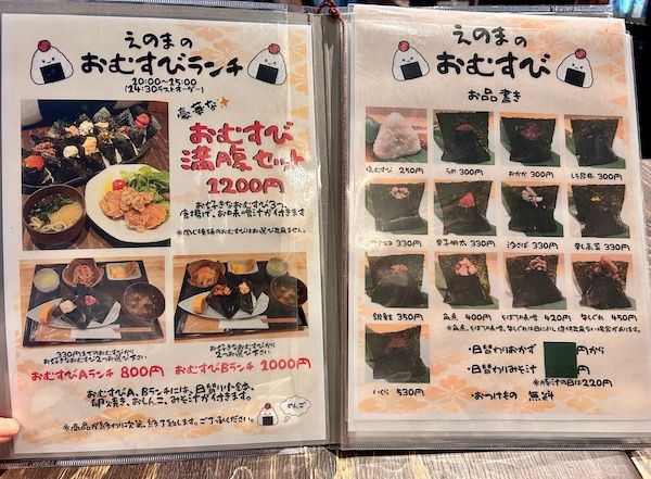 おむすびランチは、13種類のおむすびから好きなものを選んでセットにしてもらえます。 メニューはこんな感じ