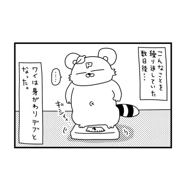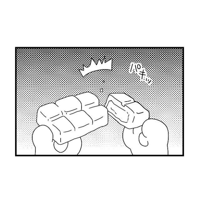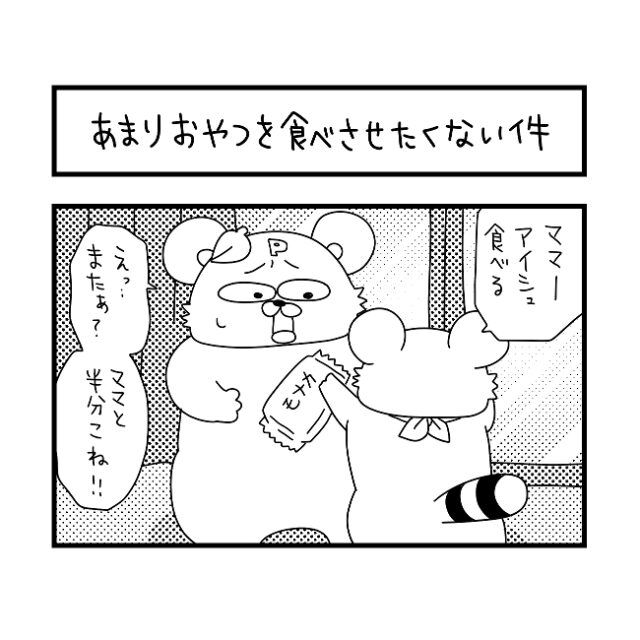 息子のおやつ食べ過ぎ防止策で半分この大きい方を食べる母。息子の健康と引きかえに体重が増加|ぽこたろー育児漫画