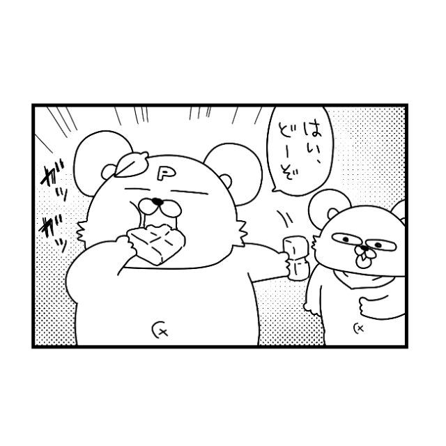 3. 息子のおやつ食べ過ぎ防止策で半分この大きい方を食べる母。息子の健康と引きかえに体重が増加|ぽこたろー育児漫画