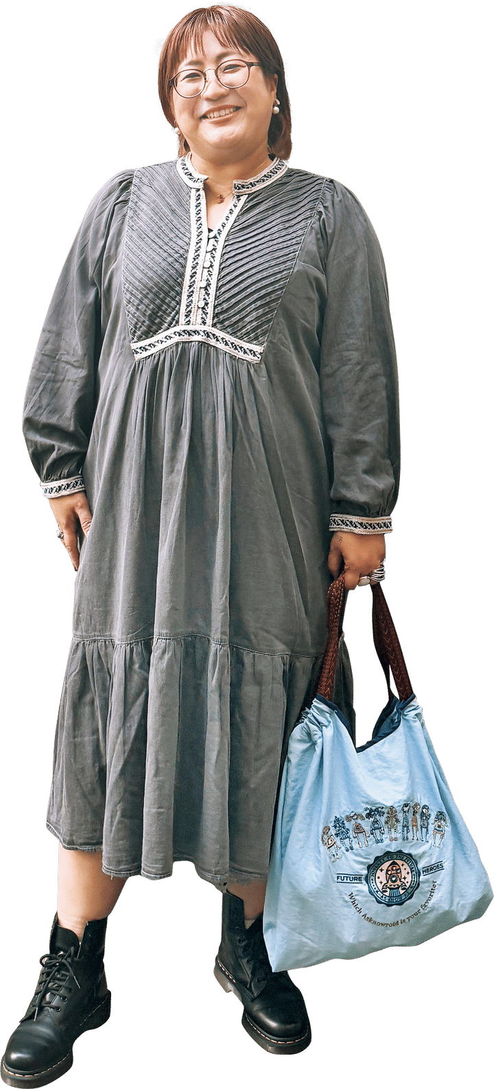 デニムワンピース 3(15-17号相当)、5(19-21号相当) ¥25,080、刺しゅうトートバッグ ¥5,390/共にアズ ノゥ アズ オオラカ(アズ ノゥ アズ) その他/本人私物
