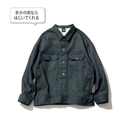 ストレッチが効いているから動きやすく、表面には撥水加工。汚れたら自宅の洗濯機で洗えて、デニムによくある縮みなどもほぼなし。すました顔して高スペックな頼もしい存在。ジャケットだけでなくボトムも含めてユニセックスで展開。