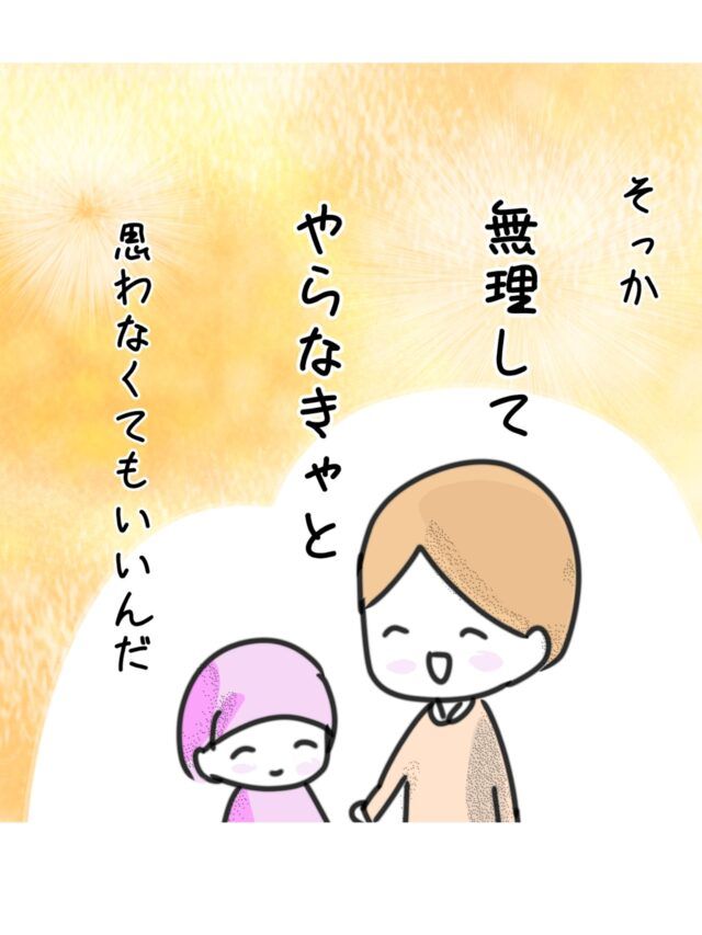 「やらなくちゃ」「できるようにならなきゃ」と思うと、できないと苦しくなりますね。自分に優しくすると子どもにも優しくなれそうです。