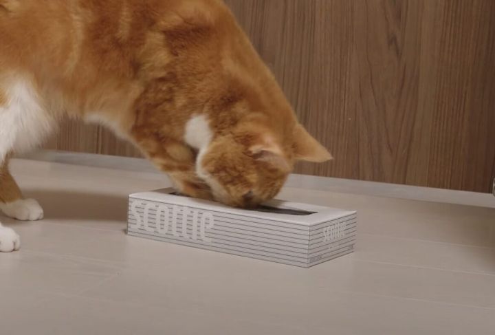 この中におやつが! どうしても自分の手で頑張りたい猫さん。