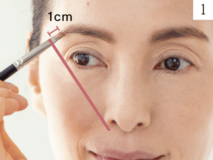 眉の長さは、眉尻を小鼻の中心から眉尻の延長線上より1cm内側にすると好バランス。