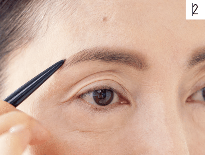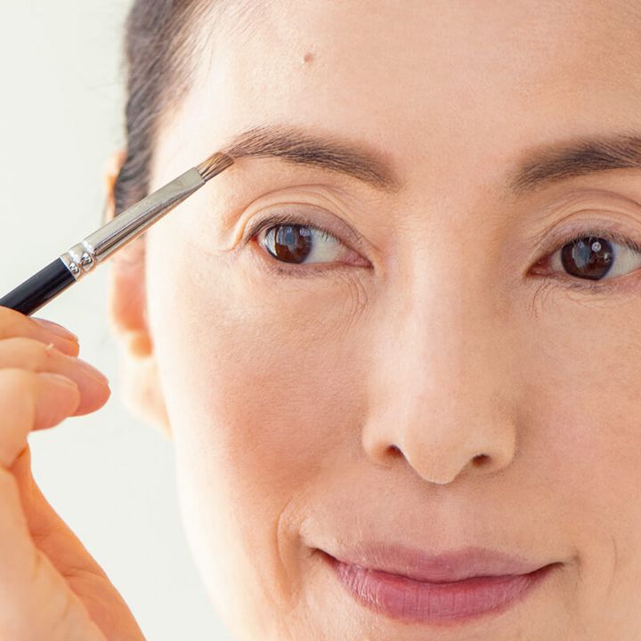 流行の眉に捉われず、足りない毛を足してまっすぐめのラインに。