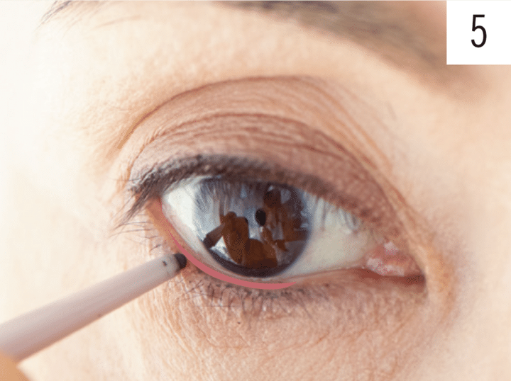 目の下の粘膜が幅広くなっている場合は、黒目の下あたりにダークグレーのペンシルでラインを入れます。疑似まつ毛に見えて、目力アップ。