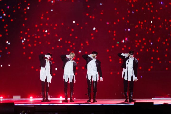 リーダーのSOOBINが活動休止により不在でしたが、4人で圧巻のパフォーマンスを披露。